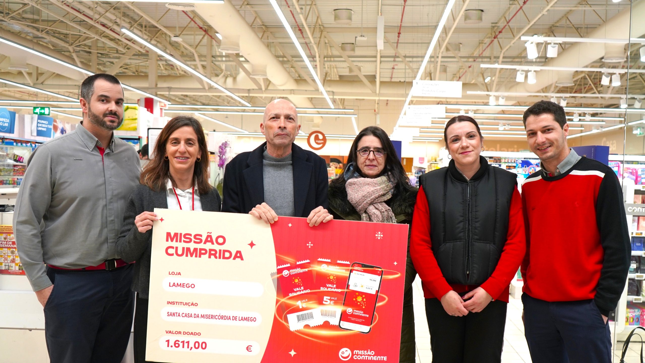 A campanha “À Mesa com Todos” da Missão Continente doou 1611 euros à Santa Casa da Misericórdia de Lamego. Esta verba foi angariada, durante a quadra natalícia, através da venda de vales solidários aos clientes da loja “Continente Modelo-Lamego”.