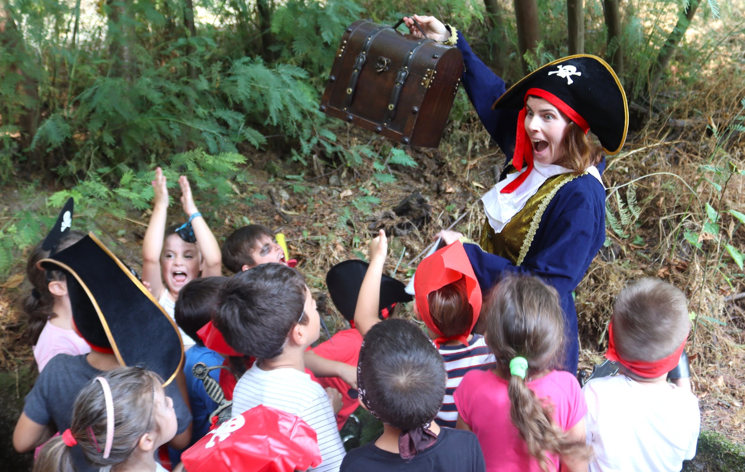 Num misto de aventura e suspense, os pequenos piratas receberam pistas e superaram vários desafios que os conduziram a diferentes locais da instituição, até encontrarem um tesouro escondido no meio da natureza.